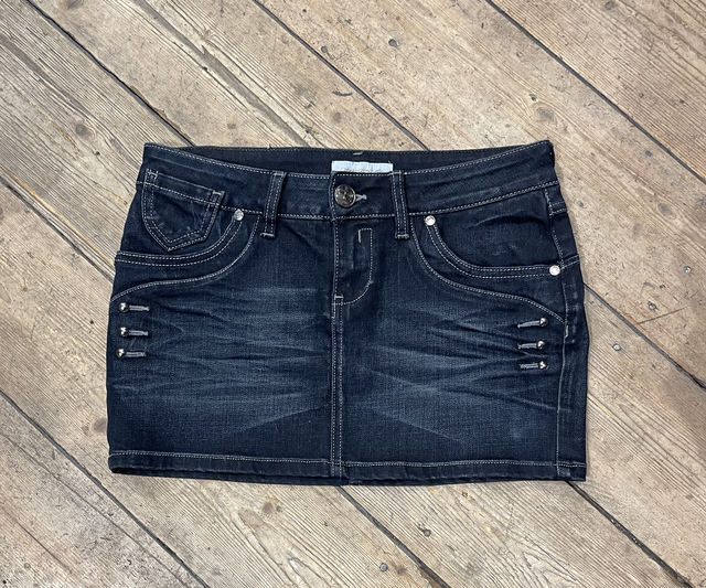 Minirock, Denim mit Markennamen Details, Silber, Glitzernähte Farbe dunkelblau mit Waschung
